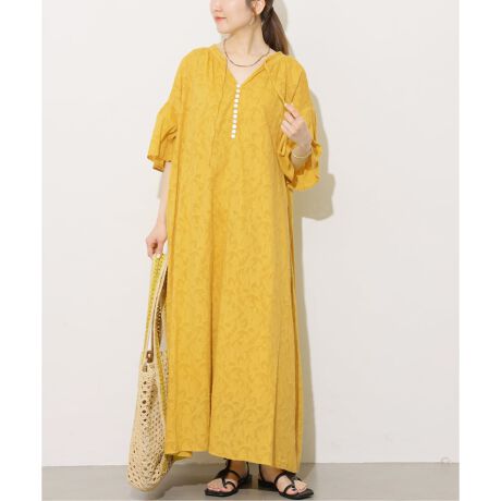 ◆華やかなコットンジャガードの素材を使用したスキッパーワンピース