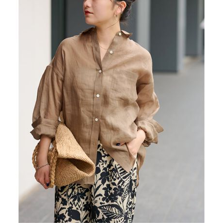 素材感:リネン特有のシャリ感と透け感で、見た目にも涼し気な印象です。