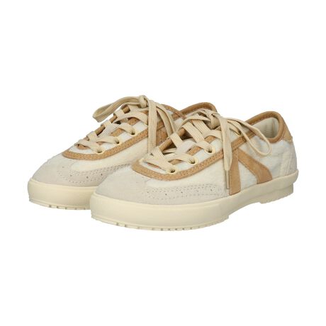 クラシカルな雰囲気の異素材コンビスニーカーは、クッション性のあるソールが長時間の歩行でも疲れにくく、普段使いに最適です。