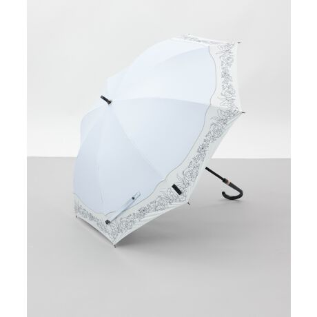 一級遮光生地を使用した晴雨兼用傘。バイカラーのカラーリングに、バタフライやローズを散りばめた、華やかな刺しゅうがポイント。ラメ刺しゅうがきらめく緩やかなカーブが、ゴージャスで品のあるデザインです。バタフライのホックがデザインと調和し、細部にまで贅沢なこだわりが光ります。