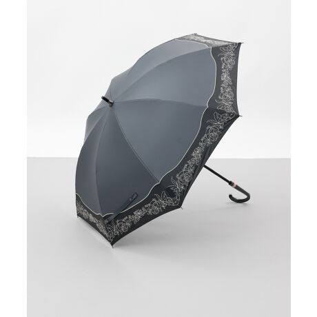 一級遮光生地を使用した晴雨兼用傘。バイカラーのカラーリングに、バタフライやローズを散りばめた、華やかな刺しゅうがポイント。ラメ刺しゅうがきらめく緩やかなカーブが、ゴージャスで品のあるデザインです。バタフライのホックがデザインと調和し、細部にまで贅沢なこだわりが光ります。
