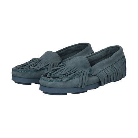 フリンジディテールが特徴的なスエードモカシンは、大人のカジュアルスタイルにはまる一足。