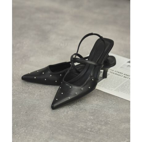 スタッズスリングバックパンプス ミュール 歩きやすい ローヒール