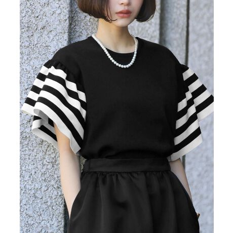袖は程よい分量のフレアギャザーを施すことで甘くなりすぎないようにデザインしました。