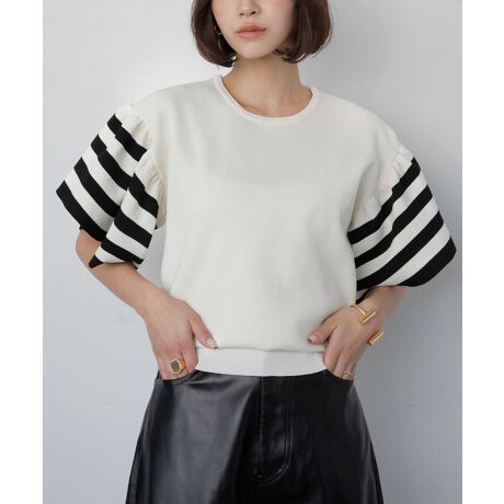 袖は程よい分量のフレアギャザーを施すことで甘くなりすぎないようにデザインしました。