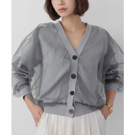 チュールレイヤードニットカーディガン