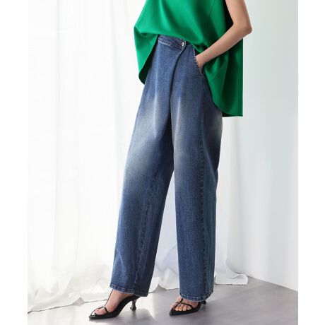 フロントのラップデザインが特徴のワイドデニムパンツです。