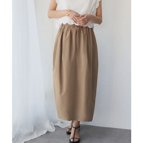 大人っぽいコクーンシルエットの為、シンプルなトップスを合わせるのがオススメ。