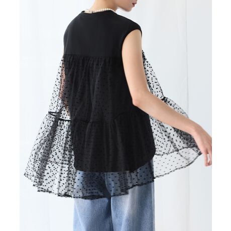 同色のドットチュールの切り替えがポイントのドッキングトップス。