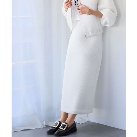 シアーメッシュ素材のアウターとセットアップで着れるウエストギャザースカート。