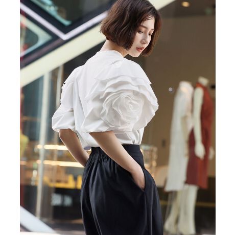 バルーンスリーブフリルモチーフカットソー