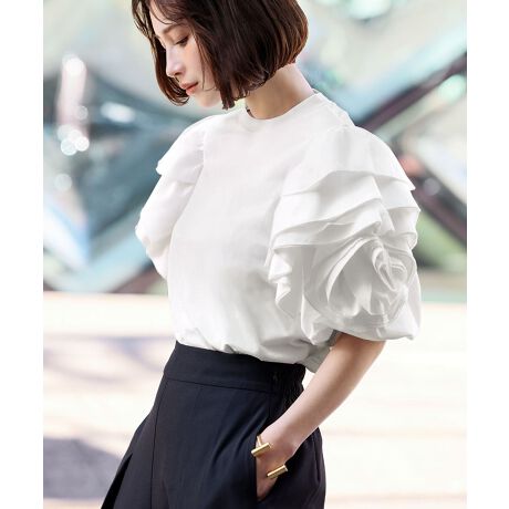 バルーンスリーブフリルモチーフカットソー