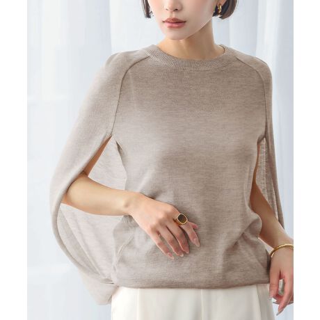 ケープを1枚羽織ったようなシルエットが特徴のニットプルオーバーです。