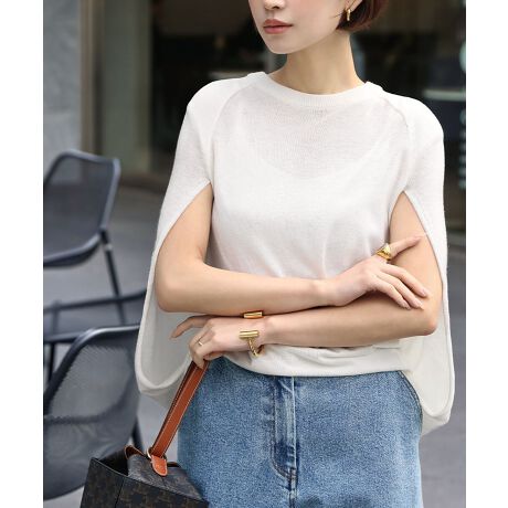 ケープを1枚羽織ったようなシルエットが特徴のニットプルオーバーです。