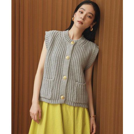 【2026SS】ノースリーブ ニットトップス ジレ ベスト 前開き 金ボタン