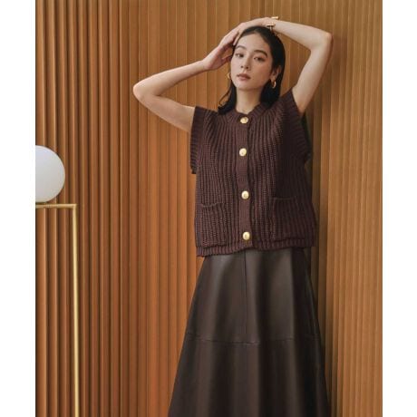 ドライタッチな糸を使用し、立体感のある編み方で仕立てた表情豊かなノースリーブニット。