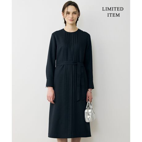 ■デザインツイードの上品な表情が際立つワンピースです。襟元から裾にかけて施されたタックディテールが、立体感のあるシルエットと程よい動きを生み出し、シンプルながらも洗練された印象に仕上げています。襟とカフスにはブラックのテープディテールをあしらい、全体を引き締めるアクセントに。上品さの中にモダンなコントラストを効かせたデザインが魅力です。付属のベルトでウエストマークをすればメリハリのあるシルエットが叶い、気分に合わせて楽しめる2WAY仕様です。一枚でスタイリングが完成し、デイリーからちょっとしたお出かけやオケージョンシーンまで、幅広く活躍する優秀な一着です。
