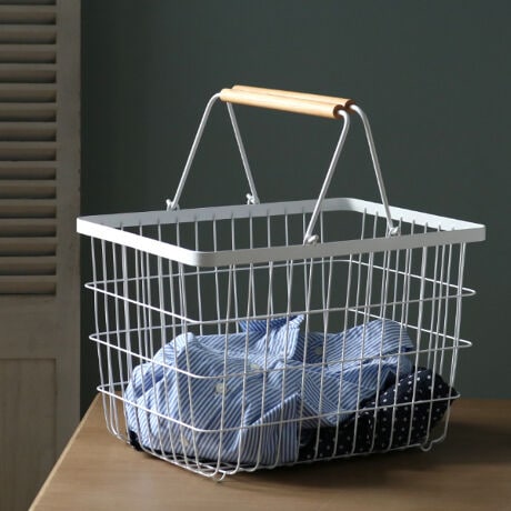 ●白アイアンスチールと天然木の組み合わせが美しいtoscaシリーズのランドリーバスケットMです。