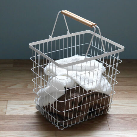 ●白アイアンスチールと天然木の組み合わせが美しいtoscaシリーズのランドリーバスケットLです。