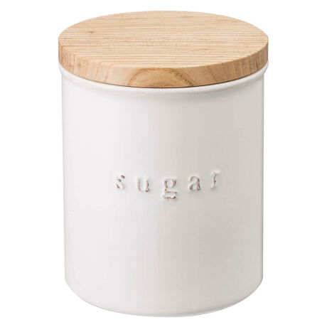 ●木目が際立った蓋、少しかすれたようなヴィンテージ加工が施された陶器製キャニスターです。