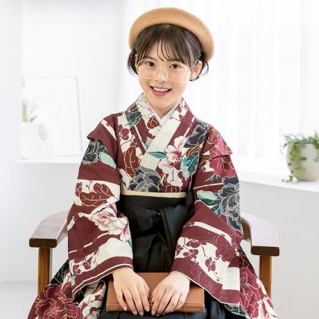 きもの館SOUBIENのプライベートブランド『floro by SOUBIEN』(フローロ)の二尺袖着物を合わせた華やかな袴セットです。