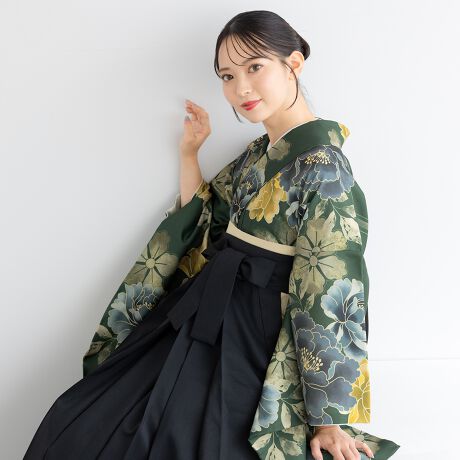 きもの館SOUBIENのプライベートブランド『floro by SOUBIEN』(フローロ)の二尺袖着物を合わせた華やかな袴セットです。
