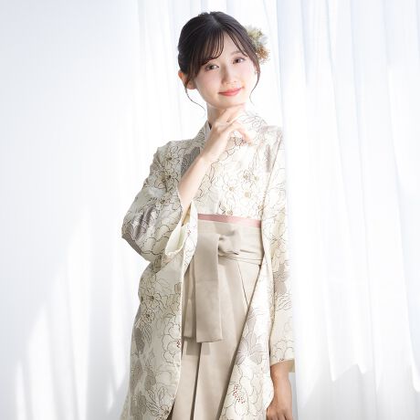 きもの館SOUBIENのプライベートブランド『floro by SOUBIEN』(フローロ)の二尺袖着物を合わせた華やかな袴セットです。