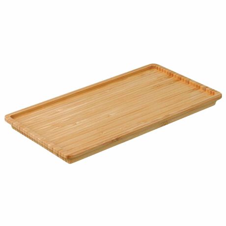 [型番:284701]【デザイン】●竹の上質感を引き立てるシンプルなデザインのトレーです。●朝食やティータイムに便利です。●テーブルから持ち上げるときに指をかけやすい角度に設計しています。●急須とカップを置ける程良いサイズです。【スペック】サイズ/約幅27.5×奥行14.5×高さ1.7cm重量/約320g内容量/1個材質/竹(ウレタン塗装)生産国/中国製