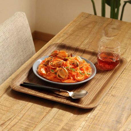 [型番:253870]【デザイン】●滑りにくいノンスリップ加工がほどこされたトレ―です。●ランチタイムや来客時にもちょうどいいサイズ感です。●薄いのですっきり収納できます。●天然木ならではの優しい手触りです。【スペック】サイズ/約幅36×奥行28×高さ1.5cm重量/約350g内容量/1枚材質/天然木(チーク積層材、ウレタン塗装)生産国/中国製食器洗い乾燥機/使用不可