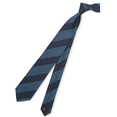 組織の切り替えが際立つストライプ柄です。縦糸と横糸が織りなす奥行きのある表情が、コーディネートに程良いアクセントを加えてくれます。長年培われた日本の技術と山梨の織物産地ならではの丁寧なものづくりから生まれた、ビジネスシーンに映える一本です。