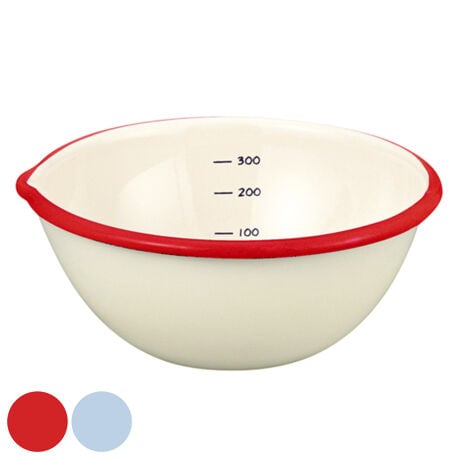 [型番:330585]【デザイン】●なめらかな質感と確かな機能性のホーロー製ボウルです。●食材のにおい移りがしにくく、酸に強いので料理の下ごしらえに最適です。●毎日使う道具だからこそこだわりたいアイテム。●サビにくく丈夫で長持ちします。●便利な目安目盛り付きです。【スペック】サイズ/約幅13×奥行13×高さ5.5cm重量/約150g容量/約0.4L内容量/1個材質/ほうろう用鋼板種類/レッド、ホワイト生産国/タイ製
