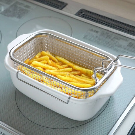 ●揚げ物がもっと便利になる、バスケット付きの角型天ぷら鍋です。