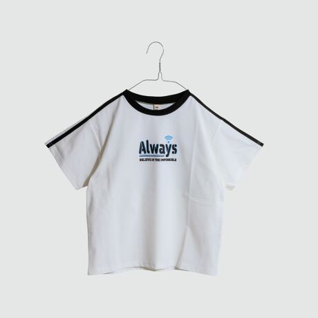 フロントとバックにロゴ、袖にラインテープを配したクルーネックTシャツ。