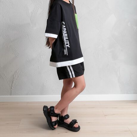 サイドにラインテープとロゴチケットを配したショートパンツ。