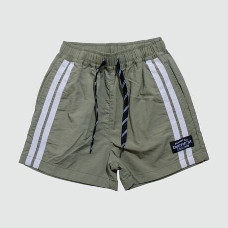 サイドにラインテープとロゴチケットを配したショートパンツ。