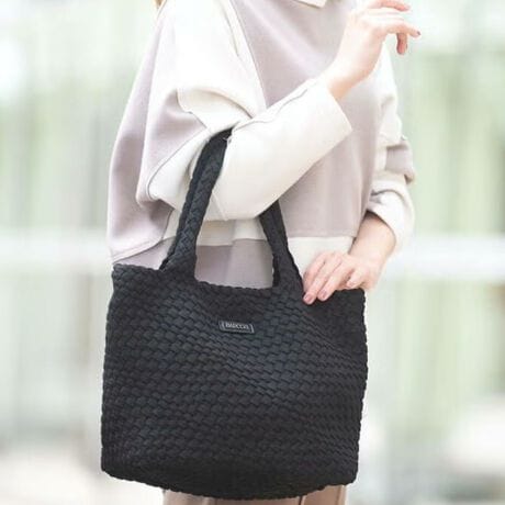 丁寧に編み込まれた網目状のデザインは、ナチュラルな中にも洗練された印象を与え、コーディネートのさりげないアクセントに。