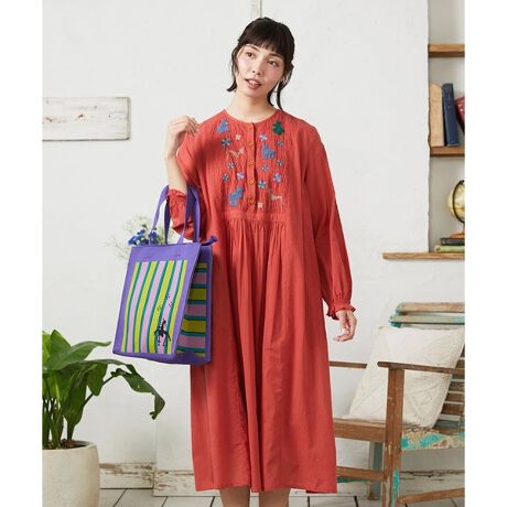 薄手のコットン100%素材に動物刺繍を施したワンピース。柔らかい軽やかな着心地で、季節の変わり目にオススメ。
