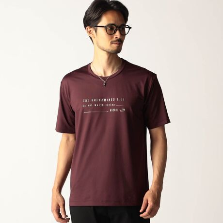 シャープな印象をあたえるメタルジェルプリントが目を惹くクルーネックTシャツになります。生地の光沢と立体的で光沢のあるメタルジェルプリントの相性は良く、高級感のあるTシャツに仕上がりました。
