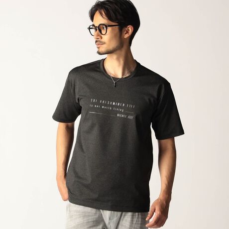 シャープな印象をあたえるメタルジェルプリントが目を惹くクルーネックTシャツになります。生地の光沢と立体的で光沢のあるメタルジェルプリントの相性は良く、高級感のあるTシャツに仕上がりました。