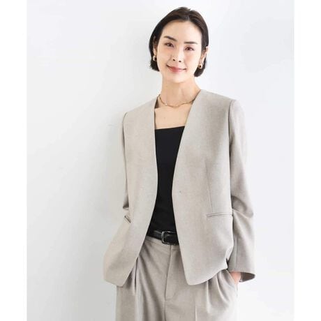 素材の持つシャープで品のある表情を活かしたノーカラージャケット。シンプルなデザインながら、美しいシルエットが際立つ一着です。40サイズは限定店舗展開です。
