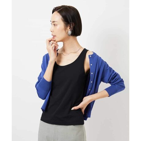 シアー感のあるトップスのインナーとしてはもちろん、見せるインナーとしても活躍する一枚です。
