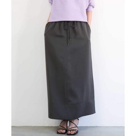 しなやかな落ち感が美しいダルサテン素材を使用したスカート。すっきりとした縦ラインのシルエットに、ウエストのドローストリングがさりげないアクセントを添えています。40サイズは限定店舗展開です。