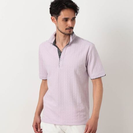 オリジナル幾何学柄ジャカード生地を使用したスキッパーポロになります。要所の別生地には布帛の小花プリントを使い上品なギミックをプラスしました。衿に仕込んだワイヤー、袖口、裾のサイドスリット等、ワンライク上の仕様を随所に盛り込んだポロシャツに仕上げています。