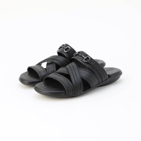 ビット金具をアクセントにしたレザーサンダル。程良いクッションが効いた厚みのあるモールドソールに、天板部分にもクッションを入れて履き心地を良くしています。ビット金具や太番手ステッチのアクセント、天板部分は滑り止めも兼ねたスウェード素材を使用する事でデザインも両立させています。