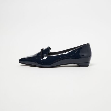 アッパーにあしらったシャープなリボンが特徴のフラットシューズ。