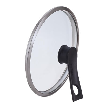 [型番:444364]【デザイン】●ガラス製でフタを開けずに中の様子を確認できるので、料理の美味しいタイミングを逃しません。●自立するのでキッチンの限られた作業スペースを有効に使えます。●20cmのフライパンに対応します。●ハンドルにキッチンツールの仮置きができます。【スペック】サイズ/約幅21.5×奥行21.5×高さ9cm重量/約500g内容量/1個材質/ガラス:強化ガラスハンドル:フェノール樹脂生産国/中国製
