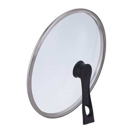 [型番:444367]【デザイン】●ガラス製でフタを開けずに中の様子を確認できるので、料理の美味しいタイミングを逃しません。●自立するのでキッチンの限られた作業スペースを有効に使えます。●28cmのフライパンに対応します。●ハンドルにキッチンツールの仮置きができます。【スペック】サイズ/約幅29.5×奥行29.5×高さ12cm重量/約800g内容量/1個材質/ガラス:強化ガラスハンドル:フェノール樹脂生産国/中国製