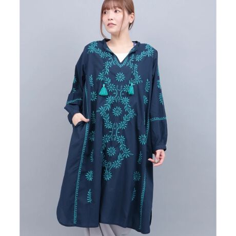 チュニックの前面に、繊細で美しい刺繍をたっぷりと施した一枚。