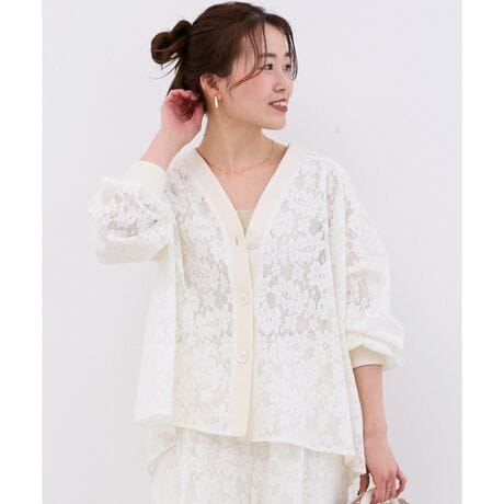 レースの存在感が際立つ、華やかで着映えするカーディガン。