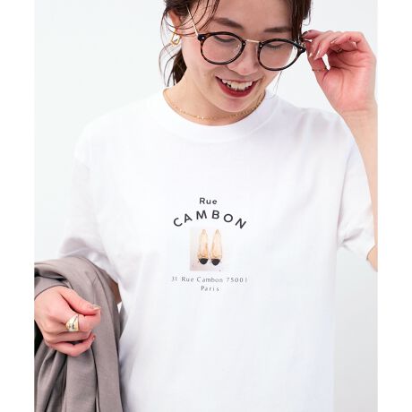 印象的なフォトとロゴの組み合わせがコーディネートのポイントになるクルーネックTシャツ。